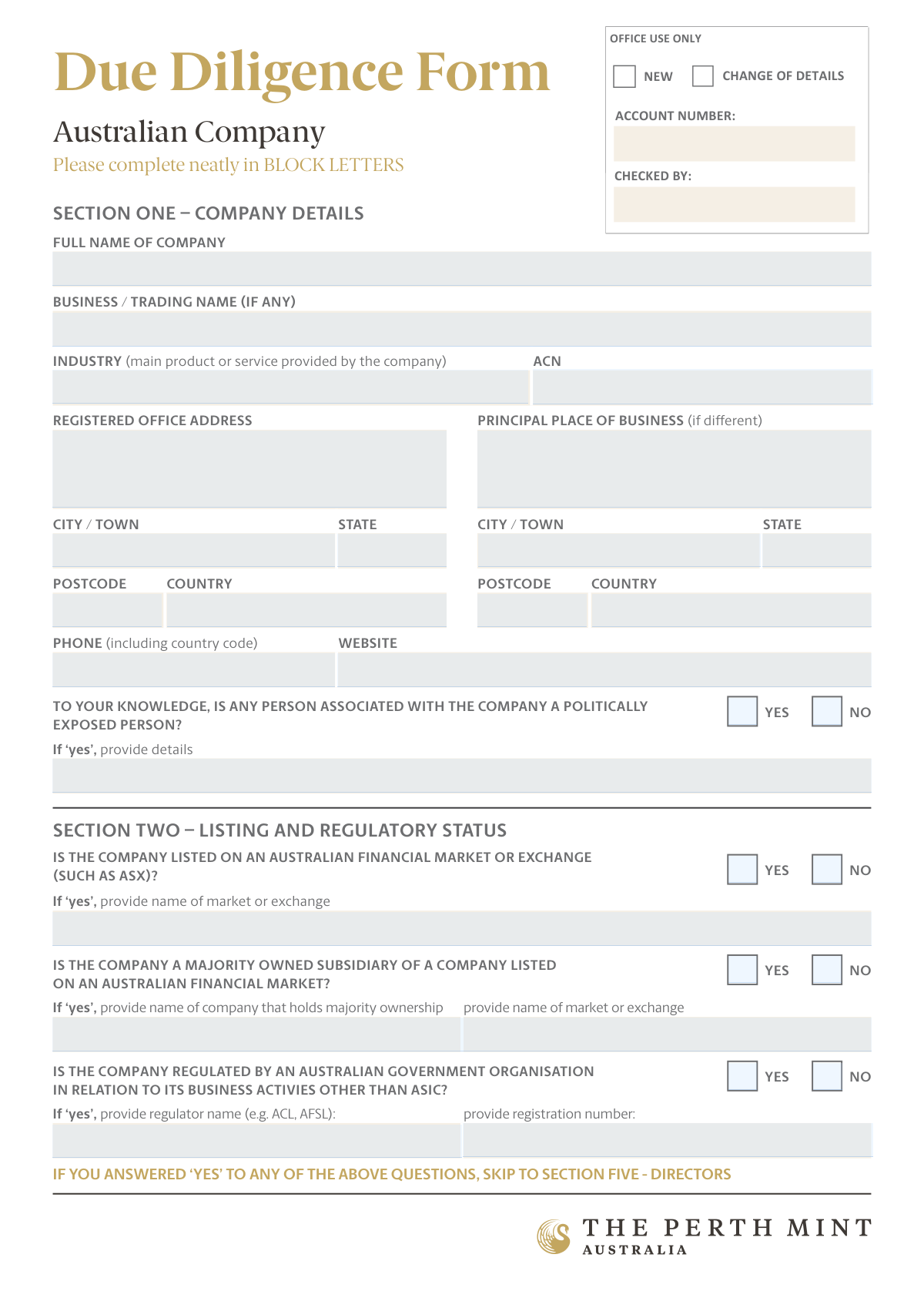 The Due Diligence Form (Australian Company) – The Perth Mint