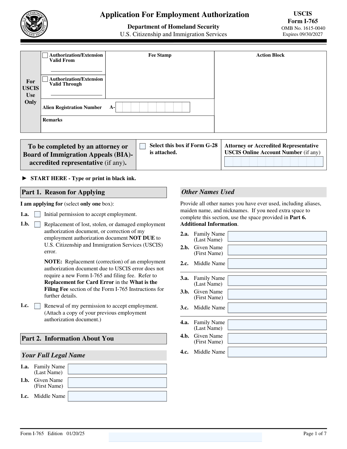 - Form I-765, Application for Employment Authorization: Used by individuals to request a work permit (EAD) or renew an existing one.