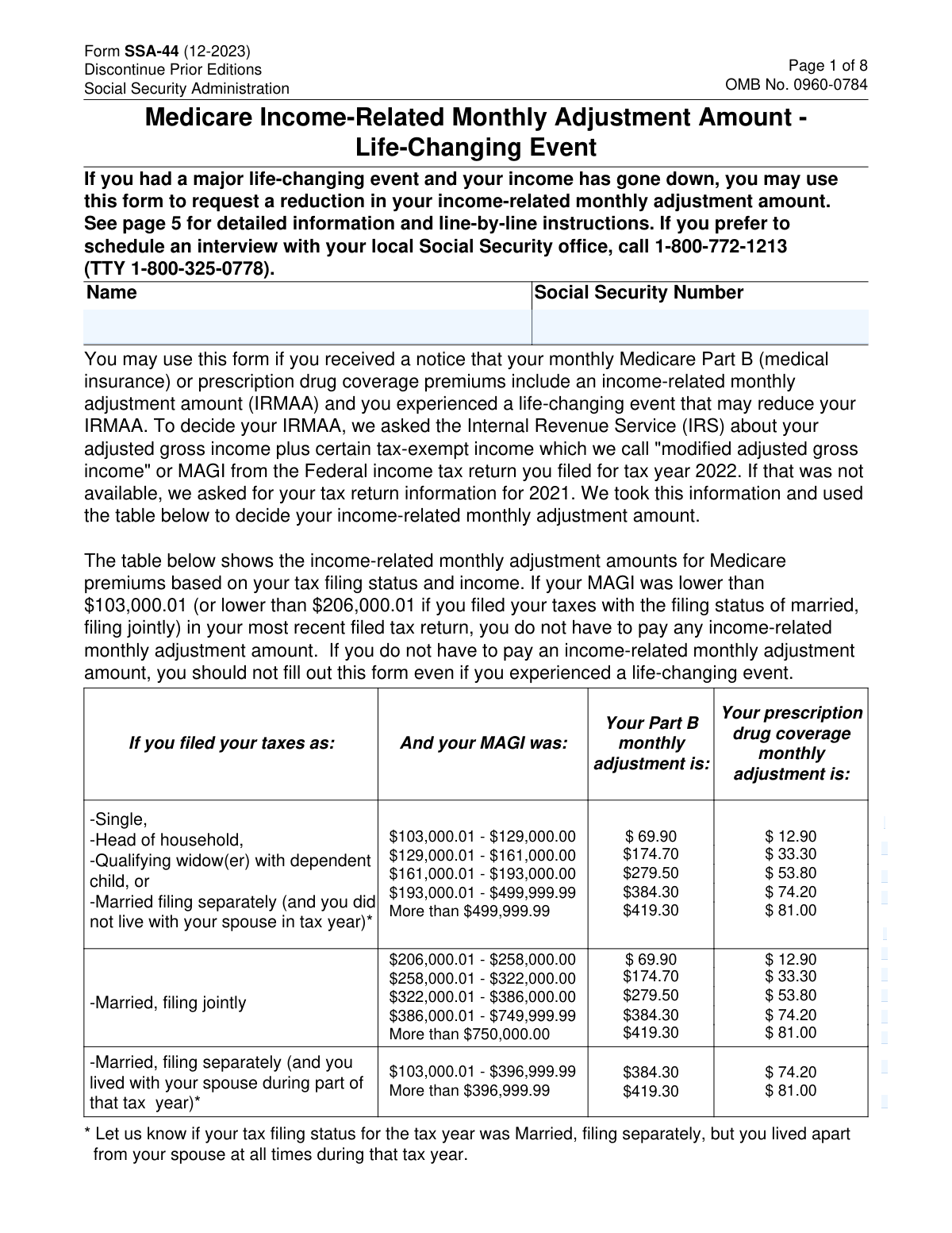 You should use Form SSA-44 if you already receive Medicare and your income has significantly dropped due to a specific event like retirement, marriage, or the loss of income-producing property. For initial claims for retirement or disability benefits, you would instead use the standard applications like Form SSA-1-BK or Form SSA-16.