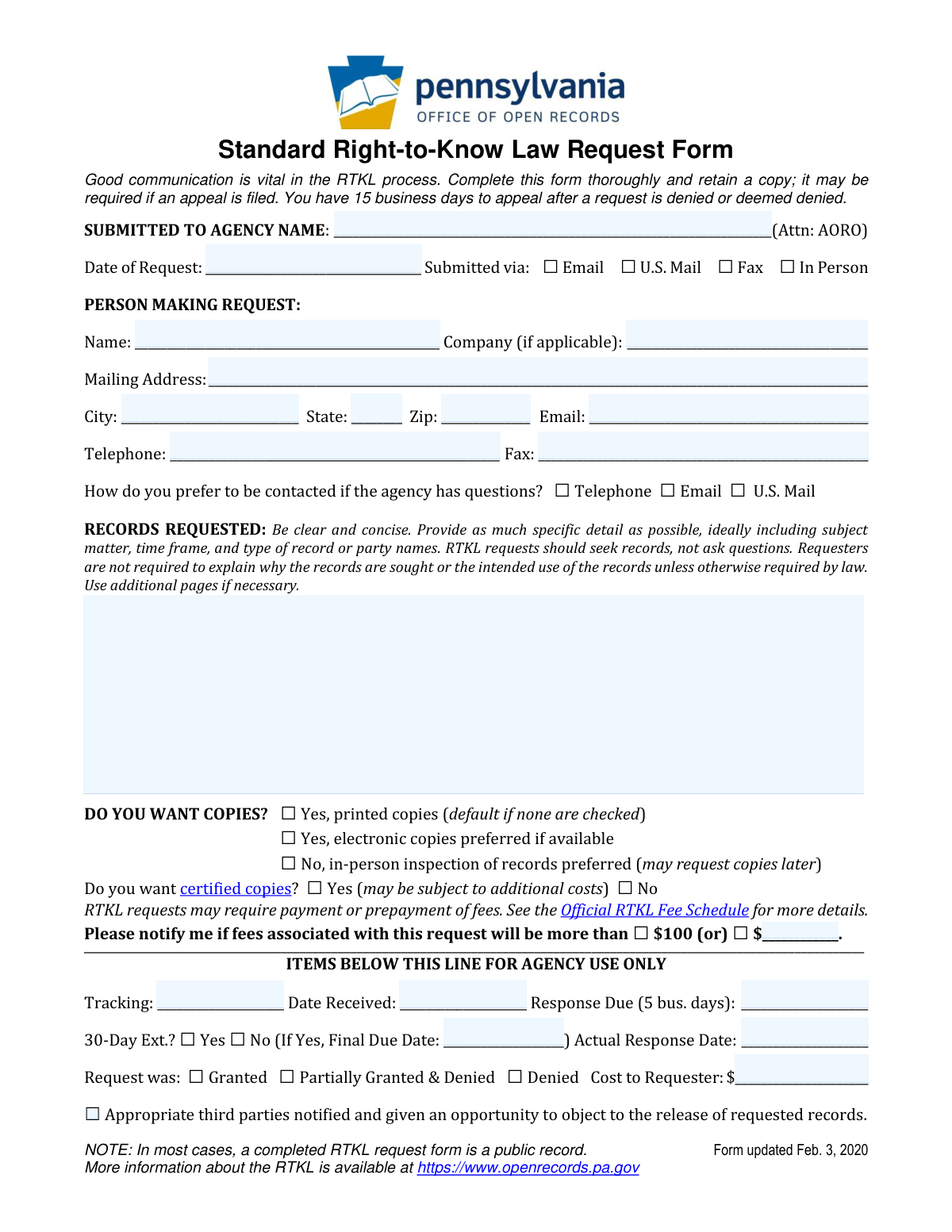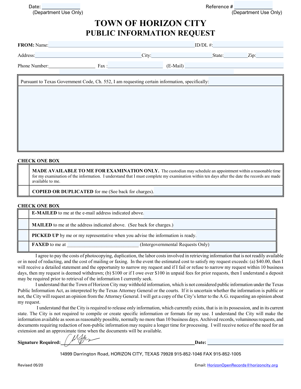 People who commonly need these forms include journalists, researchers, attorneys, business owners, concerned citizens, and anyone involved in legal proceedings that require documented government data. For example, Pennsylvania's Standard Right-to-Know Law Request Form is used to access state and local agency records under the RTKL, while the Town of Horizon City's Public Information Request form facilitates records access under the Texas Public Information Act. Filling these forms out accurately matters — incomplete or vague descriptions can delay responses or result in denials that require appeals.