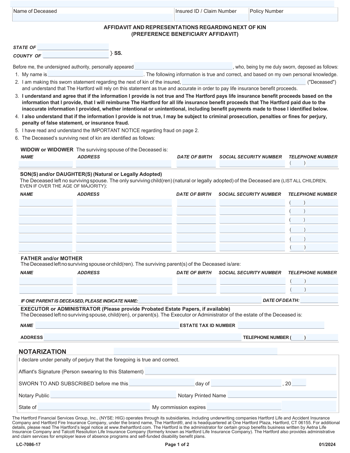 Life insurance forms cover a broad range of documents that help individuals, families, and businesses manage insurance policies, file claims, and protect financial interests at critical moments. This category includes forms used across the full lifecycle of a life insurance policy — from establishing or transferring ownership of an annuity contract, to filing a d