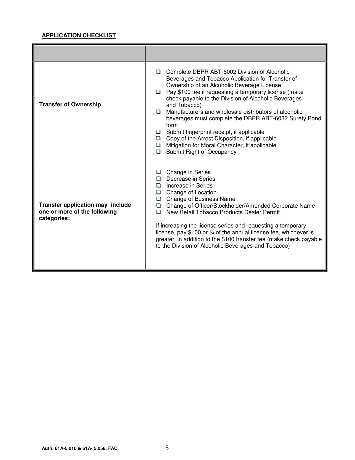 These forms are most commonly needed by business owners buying or selling a licensed establishment, entrepreneurs acquiring an existing alcoholic beverage license, and operators making structural changes to their business. For example, the DBPR ABT-6002 is used specifically when an alcoholic beverage license is changing hands or when key license details are being updated — and it requires detailed background disclosures, notarization, and supporting documents like fingerprints and surety bonds in some cases.