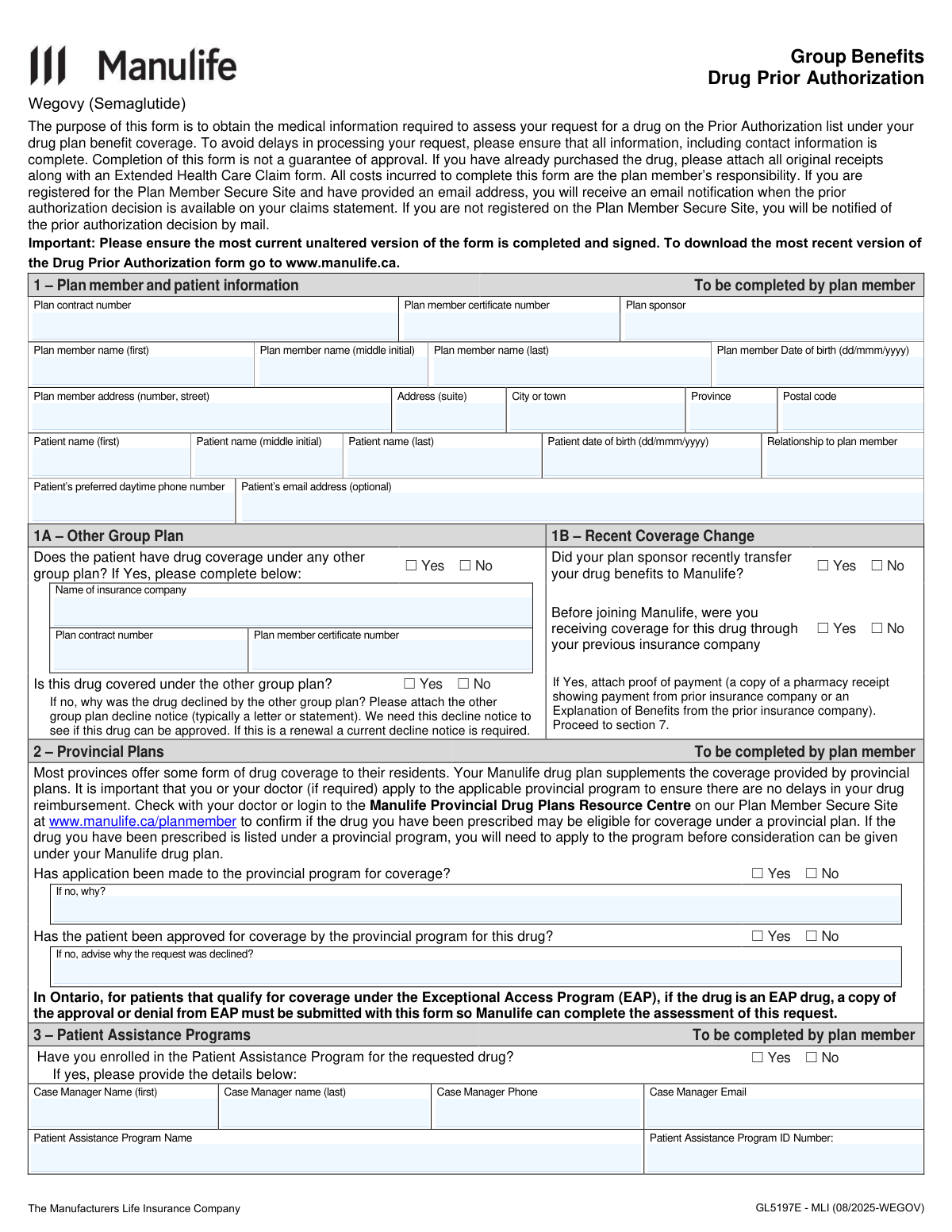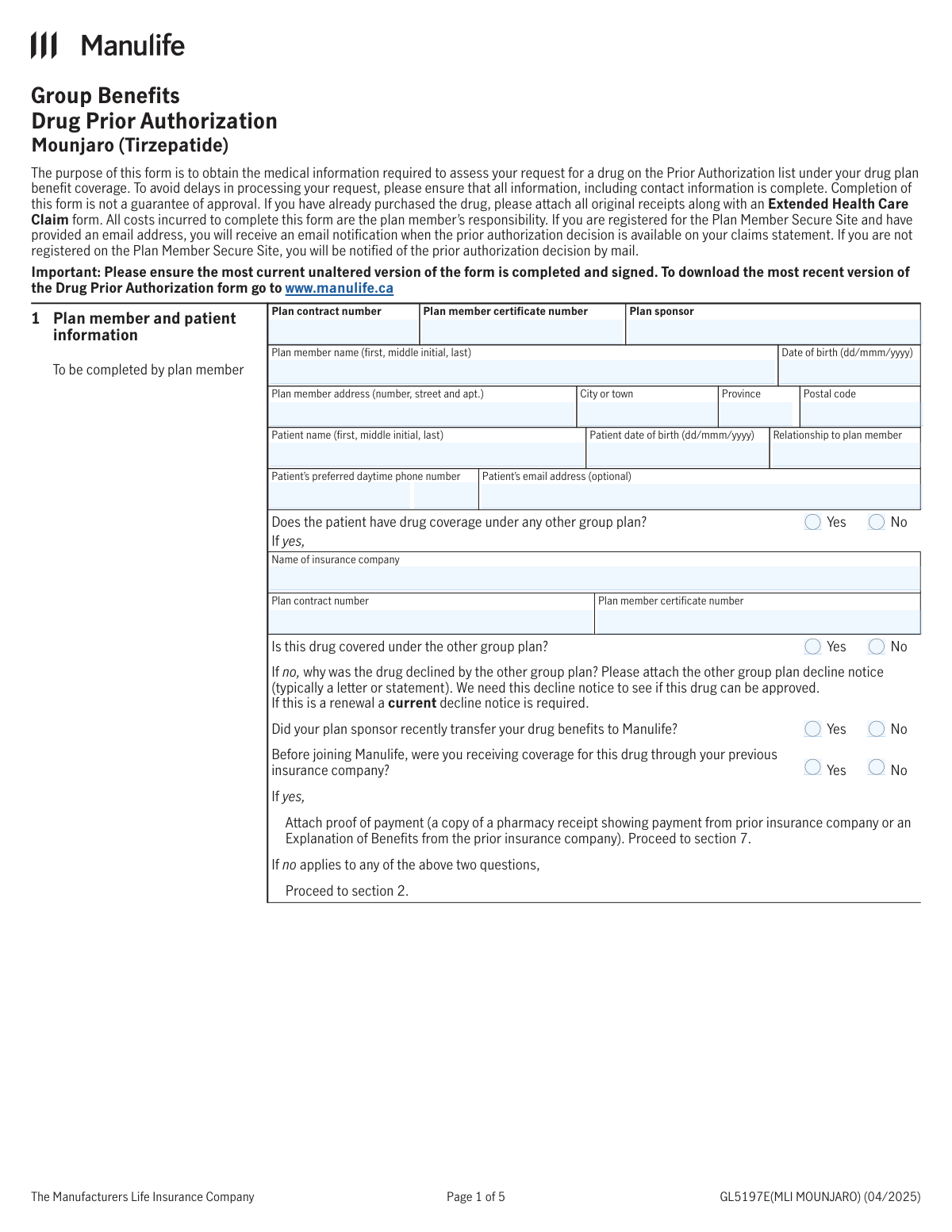 People who typically need these forms include plan members who have been prescribed medications that require pre-approval, such as newer injectable treatments for diabetes or weight management like Mounjaro, Ozempic, or Wegovy. In most cases, the prescribing physician plays a key role in completing the clinical sections, while the plan member provides consent and personal coverage details. Supporting documents — such as provincial program decisions or decline notices from other insurers — are often required alongside the form.