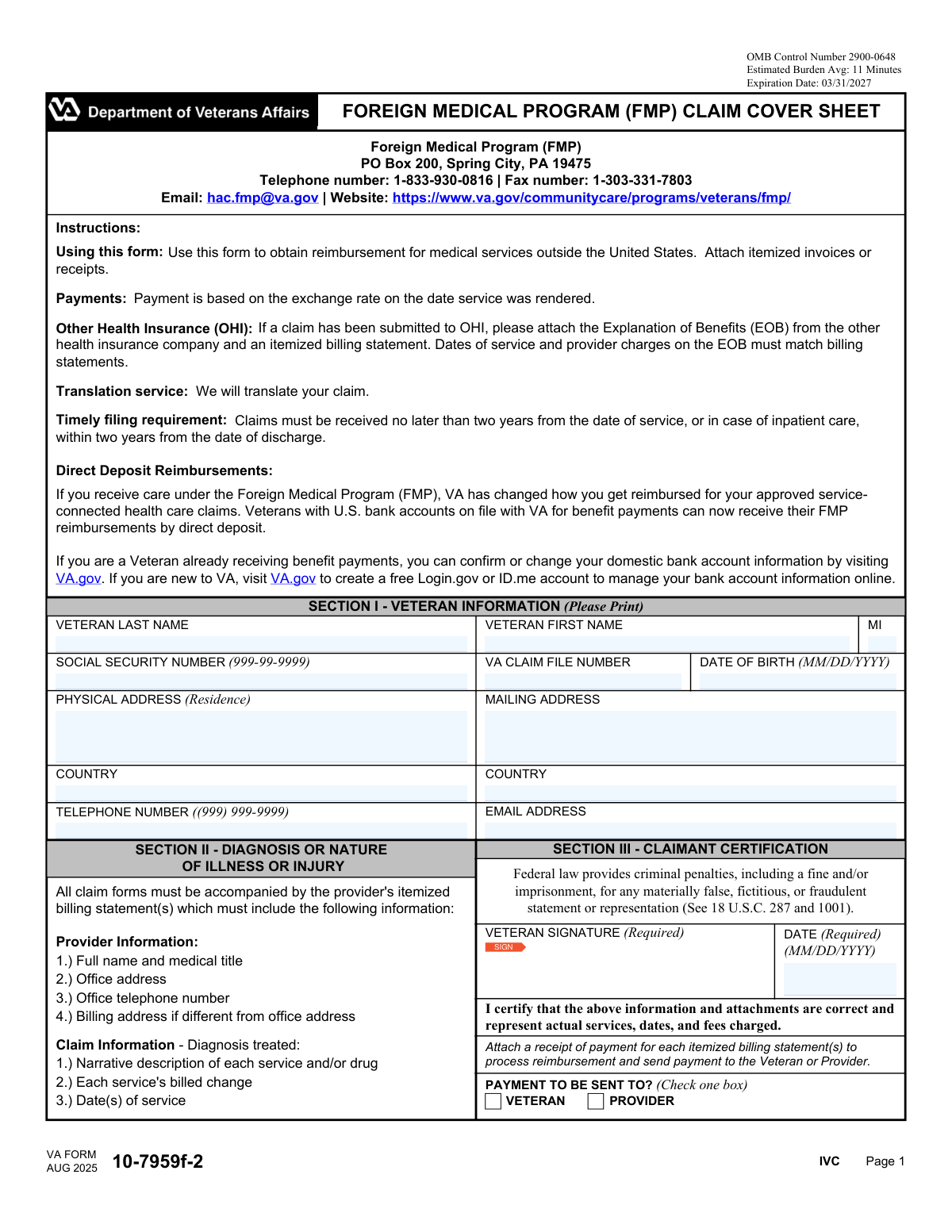 The forms in this category cover a range of common claim situations. The CMS-1500 is the standard form used by healthcare providers to bill most insurance payers for professional services. Veterans may need forms like VA Form 10-7959f-2 to seek reimbursement for medical care received abroad, or VA Form 21-0781 to support a mental health disability claim. Employees covered under plans administered by third-party administrators — such as Meritain Health — typically submit their own health claim forms to request direct reimbursement or assign benefits to a provider.