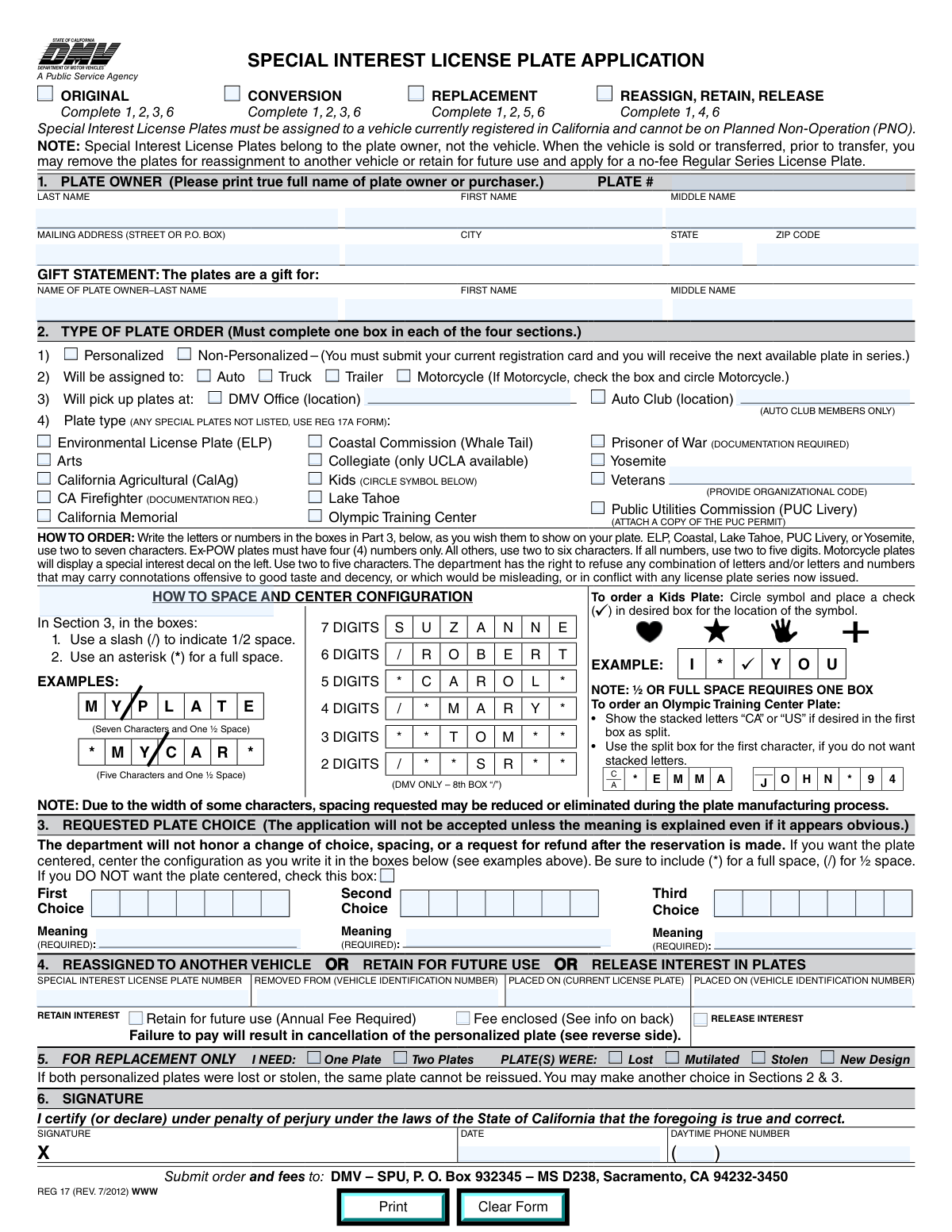 Anyone who owns or operates a vehicle in California may encounter these forms at various points — whether you're a new moped owner applying for a license plate for the first time, someone who needs a duplicate ID card or replacement plate, or a driver looking to personalize their vehicle with a special interest plate. Forms like REG 230 (for motorized bicycles) and REG 17 (for special interest license plates) are commonly needed when buying, selling, or updating a vehicle's registration, and getting them right matters — errors can delay processing or result in incorrect credentials being issued.